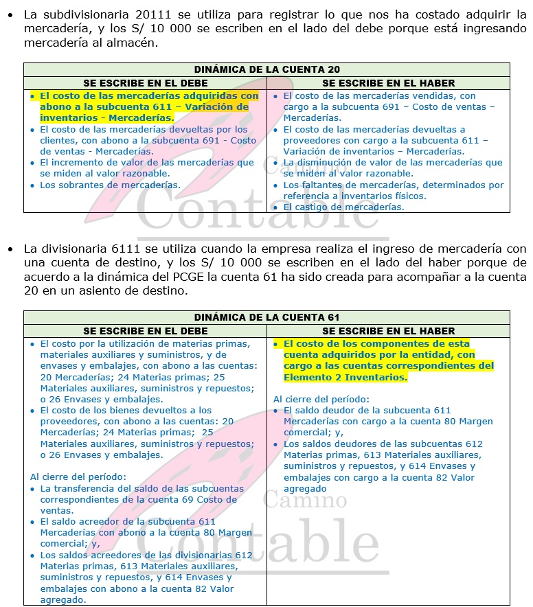 orden deudoras. En el caso de las mercaderías recibidas en consignación,