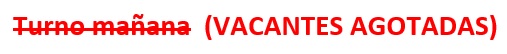 --> Las vacantes son limitadas (máximo 12 estudiantes por turno)